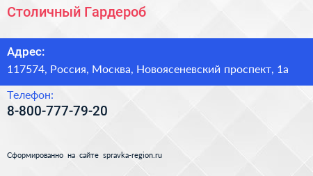Столичный Гардероб по адресу 117574, Россия, Москва, Новоясеневский проспект, 1а в дальнейшем Организация, размещена в следующих категориях: