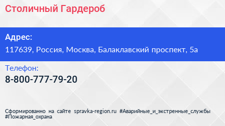 Столичный Гардероб по адресу 117639, Россия, Москва, Балаклавский проспект, 5а в дальнейшем Организация, размещена в следующих категориях: