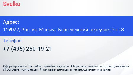 Svalka по адресу 119072, Россия, Москва, Берсеневский переулок, 5 ст3 в дальнейшем Организация, размещена в следующих категориях:
