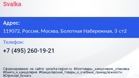 Svalka по адресу 119072, Россия, Москва, Болотная Набережная, 3 ст2 в дальнейшем Организация, размещена в следующих категориях: