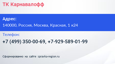 ТК Карнавалофф по адресу 140000, Россия, Москва, Красная, 1 к24 в дальнейшем Организация, размещена в следующих категориях: