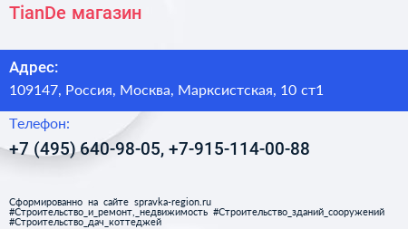 TianDe, магазин по адресу 109147, Россия, Москва, Марксистская, 10 ст1 в дальнейшем Организация, размещена в следующих категориях: