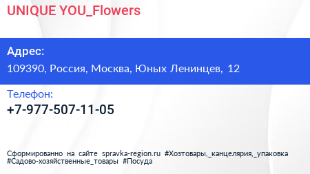 UNIQUE-YOU_Flowers по адресу 109390, Россия, Москва, Юных Ленинцев, 12 в дальнейшем Организация, размещена в следующих категориях:
