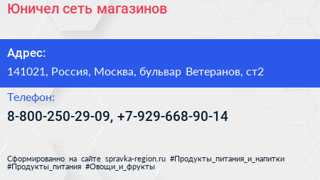 Юничел, сеть магазинов по адресу 141021, Россия, Москва, бульвар Ветеранов, ст2 в дальнейшем Организация, размещена в следующих категориях: