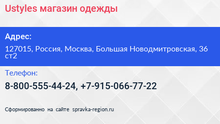 Ustyles, магазин одежды по адресу 127015, Россия, Москва, Большая Новодмитровская, 36 ст2 в дальнейшем Организация, размещена в следующих категориях: