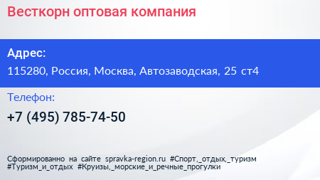 Весткорн, оптовая компания по адресу 115280, Россия, Москва, Автозаводская, 25 ст4 в дальнейшем Организация, размещена в следующих категориях: