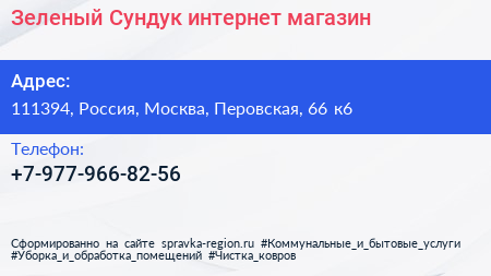 Зеленый Сундук, интернет-магазин по адресу 111394, Россия, Москва, Перовская, 66 к6 в дальнейшем Организация, размещена в следующих категориях: