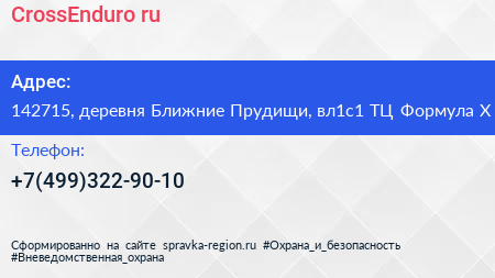CrossEnduro.ru по адресу 142715, деревня Ближние Прудищи, вл1с1 ТЦ Формула Х в дальнейшем Организация, размещена в следующих категориях:
