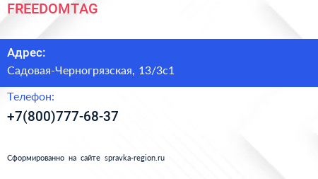 FREEDOMTAG по адресу Садовая-Черногрязская, 13/3с1 в дальнейшем Организация, размещена в следующих категориях: