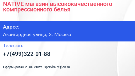 NATIVE, магазин высококачественного компрессионного белья по адресу Авангардная улица, 3, Москва в дальнейшем Организация, размещена в следующих категориях: