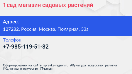 1 сад, магазин садовых растений по адресу 127282, Россия, Москва, Полярная, 33а в дальнейшем Организация, размещена в следующих категориях: