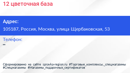 12, цветочная база по адресу 105187, Россия, Москва, улица Щербаковская, 53 в дальнейшем Организация, размещена в следующих категориях: