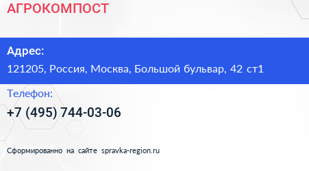 АГРОКОМПОСТ по адресу 121205, Россия, Москва, Большой бульвар, 42 ст1 в дальнейшем Организация, размещена в следующих категориях: