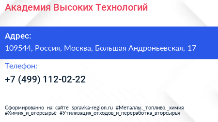 Академия Высоких Технологий по адресу 109544, Россия, Москва, Большая Андроньевская, 17 в дальнейшем Организация, размещена в следующих категориях: