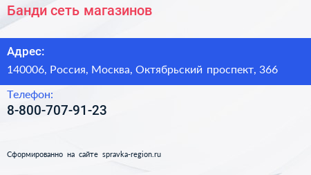 Банди, сеть магазинов по адресу 140006, Россия, Москва, Октябрьский проспект, 366 в дальнейшем Организация, размещена в следующих категориях: