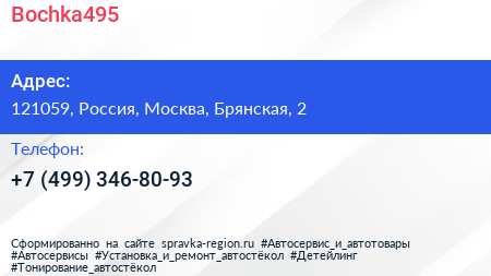 Bochka495 по адресу 121059, Россия, Москва, Брянская, 2 в дальнейшем Организация, размещена в следующих категориях: