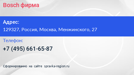 Bosch, фирма по адресу 129327, Россия, Москва, Менжинского, 27 в дальнейшем Организация, размещена в следующих категориях:
