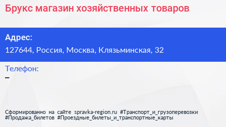 Брукс, магазин хозяйственных товаров по адресу 127644, Россия, Москва, Клязьминская, 32 в дальнейшем Организация, размещена в следующих категориях: