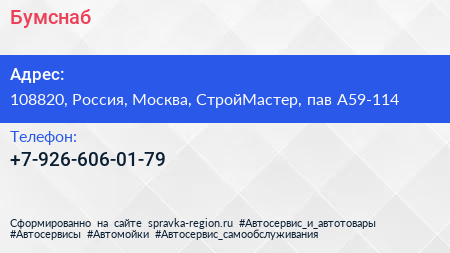 Бумснаб по адресу 108820, Россия, Москва, СтройМастер, пав А59-114 в дальнейшем Организация, размещена в следующих категориях: