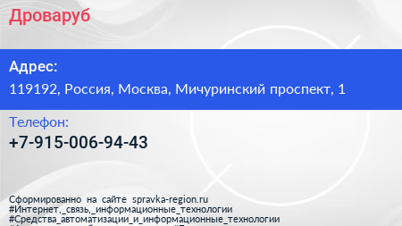 Дроваруб по адресу 119192, Россия, Москва, Мичуринский проспект, 1 в дальнейшем Организация, размещена в следующих категориях: