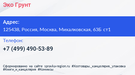 Эко-Грунт по адресу 125438, Россия, Москва, Михалковская, 63Б ст1 в дальнейшем Организация, размещена в следующих категориях: