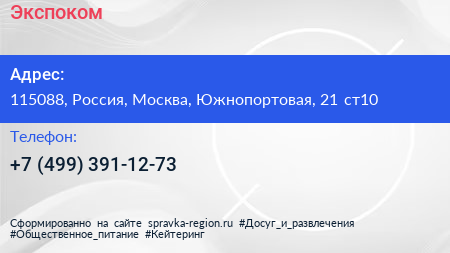 Экспоком по адресу 115088, Россия, Москва, Южнопортовая, 21 ст10 в дальнейшем Организация, размещена в следующих категориях: