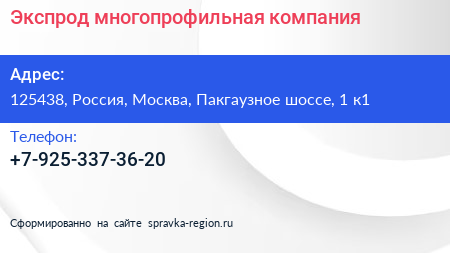 Экспрод, многопрофильная компания по адресу 125438, Россия, Москва, Пакгаузное шоссе, 1 к1 в дальнейшем Организация, размещена в следующих категориях: