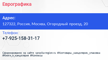 Еврографика по адресу 127322, Россия, Москва, Огородный проезд, 20 в дальнейшем Организация, размещена в следующих категориях:
