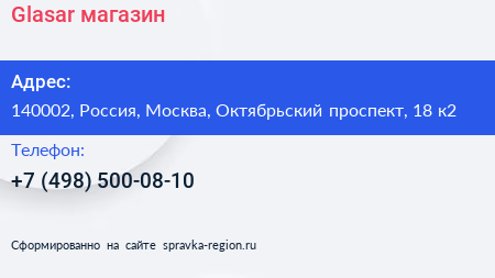 Glasar, магазин по адресу 140002, Россия, Москва, Октябрьский проспект, 18 к2 в дальнейшем Организация, размещена в следующих категориях: