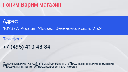 Гоним Варим, магазин по адресу 109377, Россия, Москва, Зеленодольская, 9 к2 в дальнейшем Организация, размещена в следующих категориях: