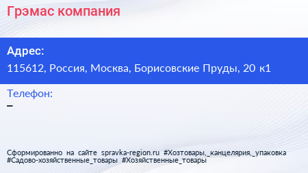Грэмас, компания по адресу 115612, Россия, Москва, Борисовские Пруды, 20 к1 в дальнейшем Организация, размещена в следующих категориях: