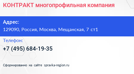 КОНТРАКТ, многопрофильная компания по адресу 129090, Россия, Москва, Мещанская, 7 ст1 в дальнейшем Организация, размещена в следующих категориях: