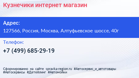 Кузнечики, интернет-магазин по адресу 127566, Россия, Москва, Алтуфьевское шоссе, 40г в дальнейшем Организация, размещена в следующих категориях: