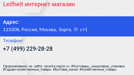 Leifheit, интернет-магазин по адресу 123308, Россия, Москва, Зорге, 7г ст1 в дальнейшем Организация, размещена в следующих категориях: