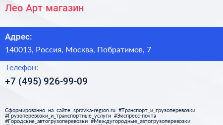 Лео-Арт, магазин по адресу 140013, Россия, Москва, Побратимов, 7 в дальнейшем Организация, размещена в следующих категориях:
