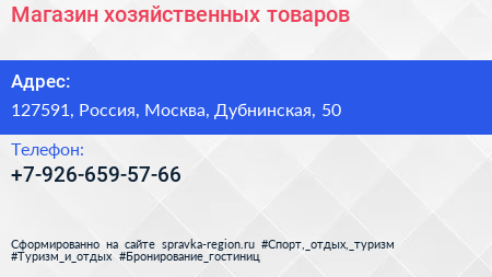 Магазин хозяйственных товаров по адресу 127591, Россия, Москва, Дубнинская, 50 в дальнейшем Организация, размещена в следующих категориях: