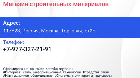 Магазин строительных материалов по адресу 117623, Россия, Москва, Торговая, ст2Б в дальнейшем Организация, размещена в следующих категориях: