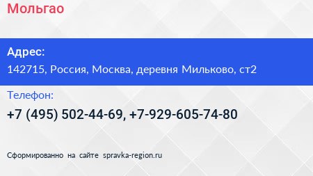 Мольгао по адресу 142715, Россия, Москва, деревня Мильково, ст2 в дальнейшем Организация, размещена в следующих категориях: