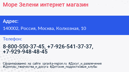 Море Зелени, интернет-магазин по адресу 140002, Россия, Москва, Колхозная, 10 в дальнейшем Организация, размещена в следующих категориях: