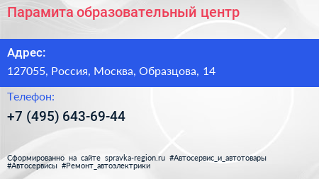 Парамита, образовательный центр по адресу 127055, Россия, Москва, Образцова, 14 в дальнейшем Организация, размещена в следующих категориях: