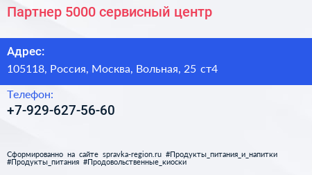 Партнер-5000, сервисный центр по адресу 105118, Россия, Москва, Вольная, 25 ст4 в дальнейшем Организация, размещена в следующих категориях: