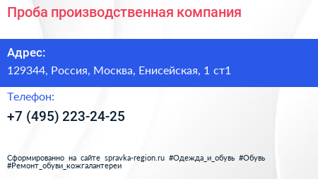Проба, производственная компания по адресу 129344, Россия, Москва, Енисейская, 1 ст1 в дальнейшем Организация, размещена в следующих категориях: