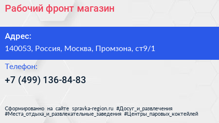 Рабочий фронт, магазин по адресу 140053, Россия, Москва, Промзона, ст9/1 в дальнейшем Организация, размещена в следующих категориях: