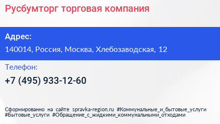 Русбумторг, торговая компания по адресу 140014, Россия, Москва, Хлебозаводская, 12 в дальнейшем Организация, размещена в следующих категориях: