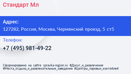 Стандарт Мл по адресу 127282, Россия, Москва, Чермянский проезд, 5 ст5 в дальнейшем Организация, размещена в следующих категориях: