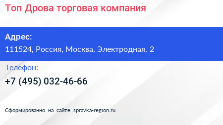 Топ-Дрова, торговая компания по адресу 111524, Россия, Москва, Электродная, 2 в дальнейшем Организация, размещена в следующих категориях: