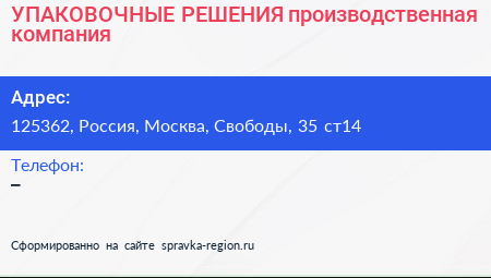 УПАКОВОЧНЫЕ РЕШЕНИЯ, производственная компания по адресу 125362, Россия, Москва, Свободы, 35 ст14 в дальнейшем Организация, размещена в следующих категориях: