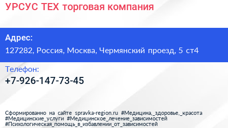 УРСУС-ТЕХ, торговая компания по адресу 127282, Россия, Москва, Чермянский проезд, 5 ст4 в дальнейшем Организация, размещена в следующих категориях: