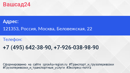 Вашсад24 по адресу 121353, Россия, Москва, Беловежская, 22 в дальнейшем Организация, размещена в следующих категориях:
