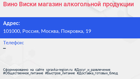 Вино & Виски, магазин алкогольной продукции по адресу 101000, Россия, Москва, Покровка, 19 в дальнейшем Организация, размещена в следующих категориях: